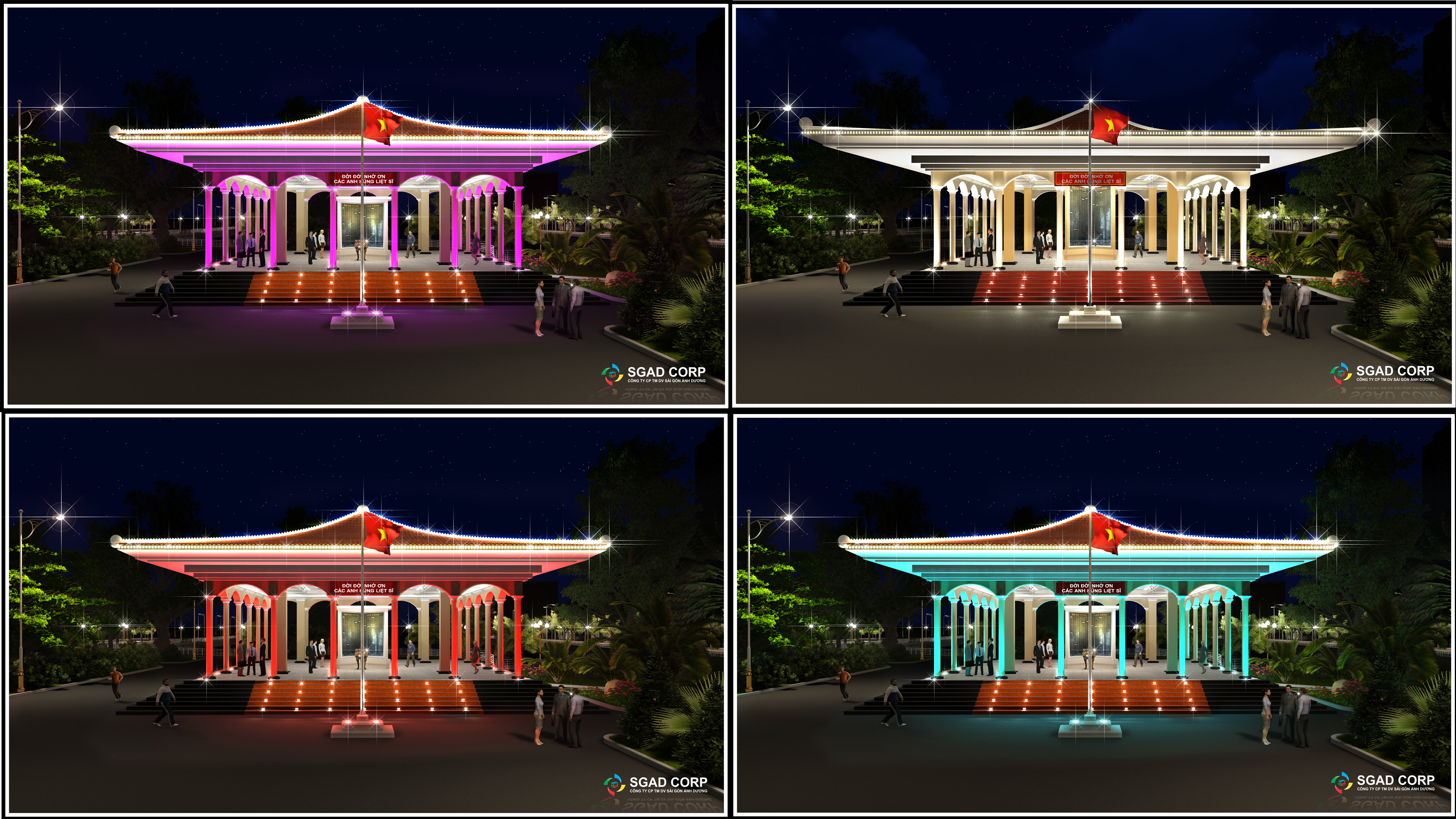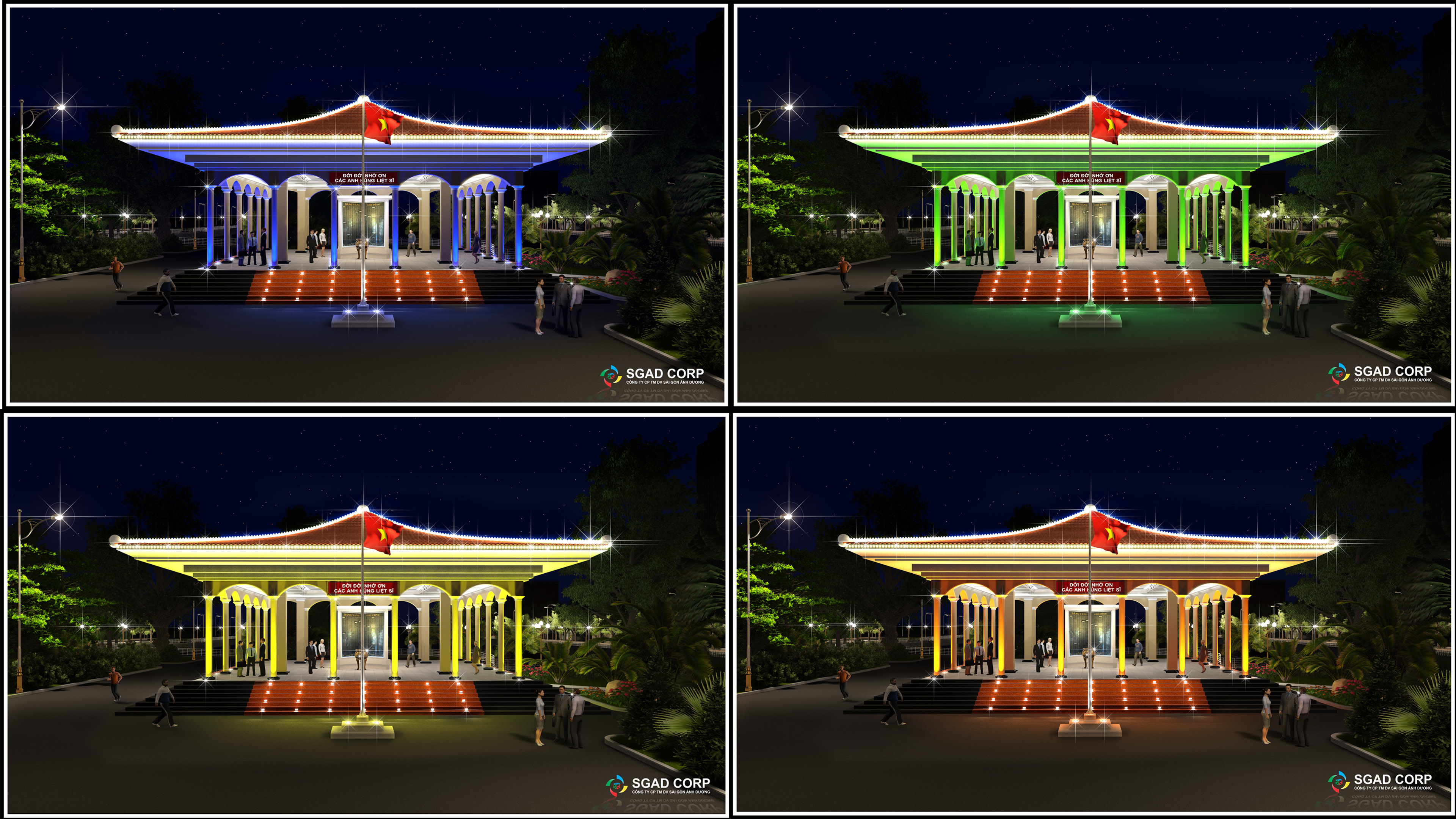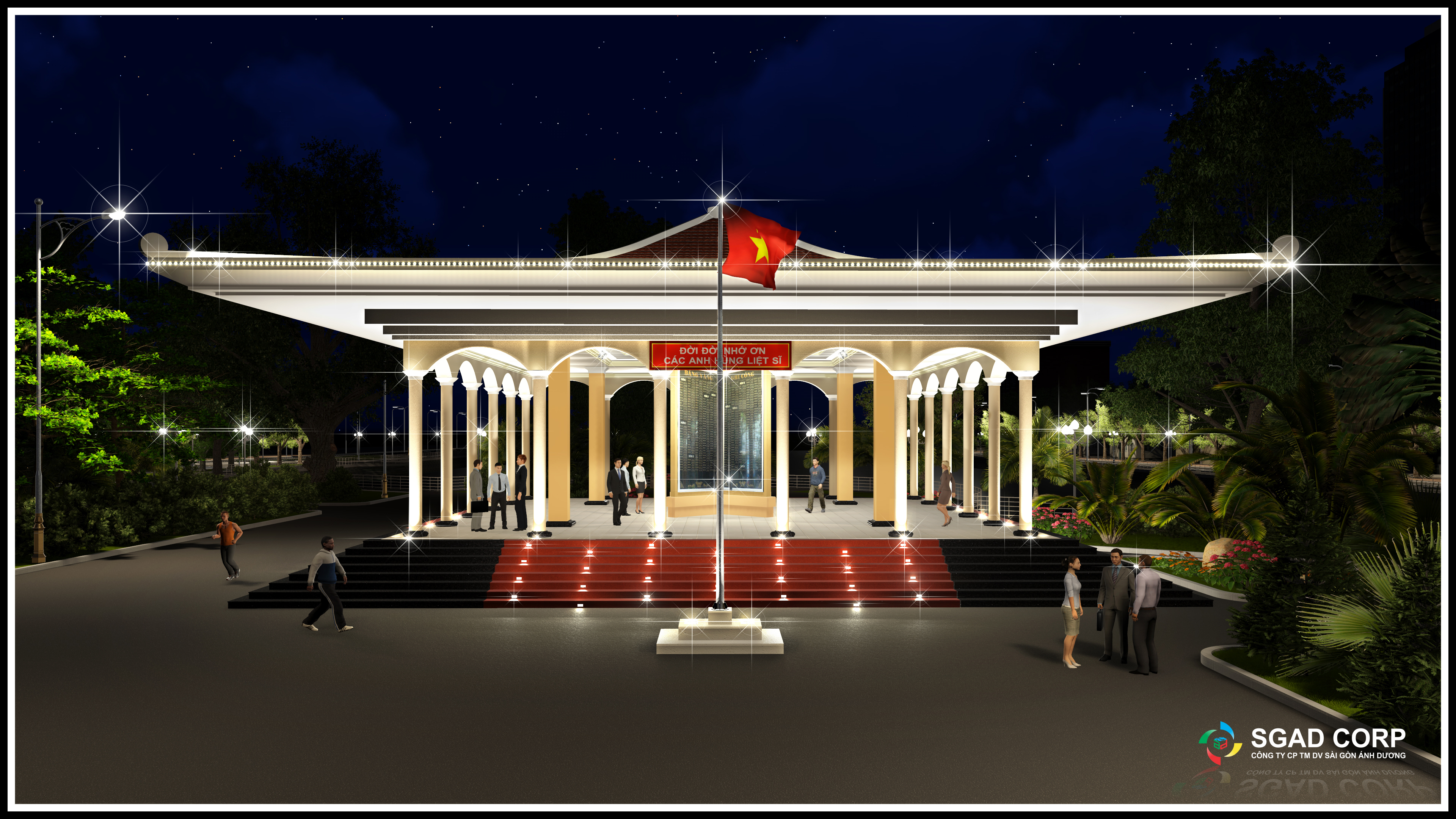Chiếu sáng nghệ thuật kiến trúc càng quan trọng và được khắc họa nổi bật hơn với những công trình mang tính dân tộc. Chiếu sáng nghệ thuật Nhà bia Liệt sĩ với hệ thống đèn LED đi viền mái, đèn pha chiếu bia ghi danh, đèn Led âm chiếu cột nhà bia và đèn led âm bậc tam cấp. Việc sử dụng kết hợp giữa ánh sáng đèn Led với ánh sáng tự nhiên sẽ làm nổi bật hơn khung cảnh về đêm cho công trình.