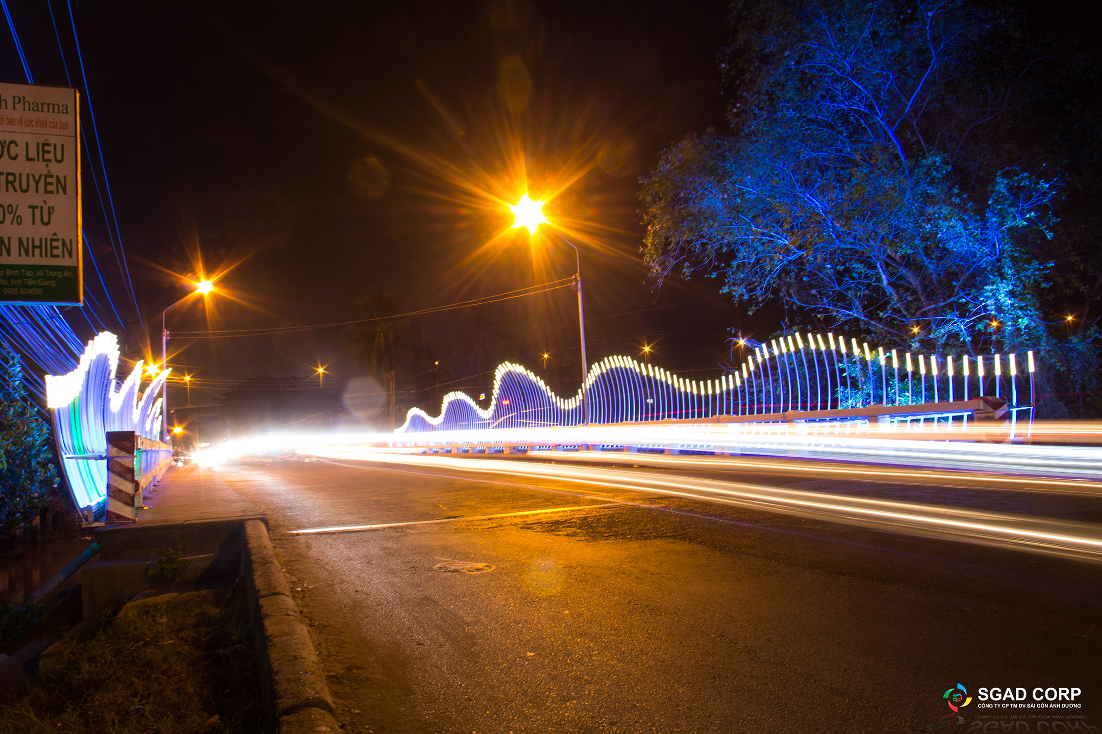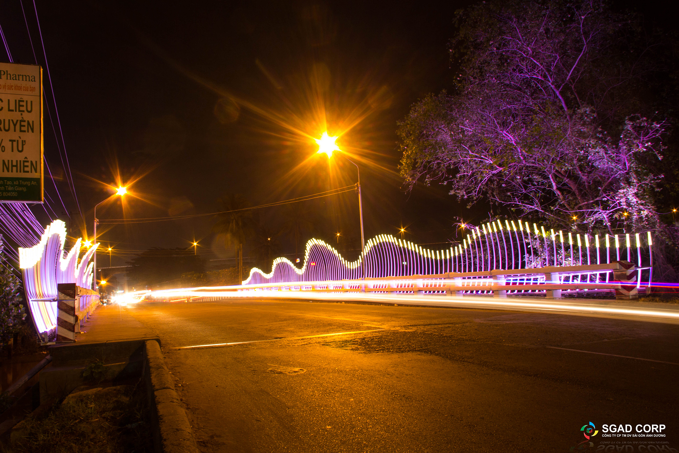 Với hình ảnh trang trí đặc sắc không chỉ giúp định hình không gian, đảm bảo độ sáng mà còn làm nổi bật được hình ảnh cây cầu vốn đơn điệu, mang lại vẻ đpẹ lung linh, huyền ảo về đêm. Và hơn hết, đó là tiết giảm đáng kể lượng điện năng tiêu thụ cho công trinh.