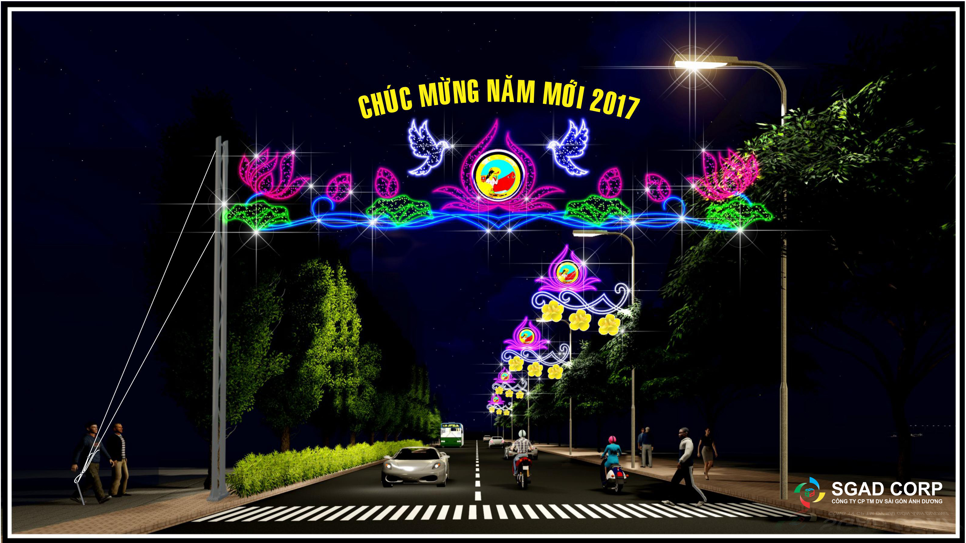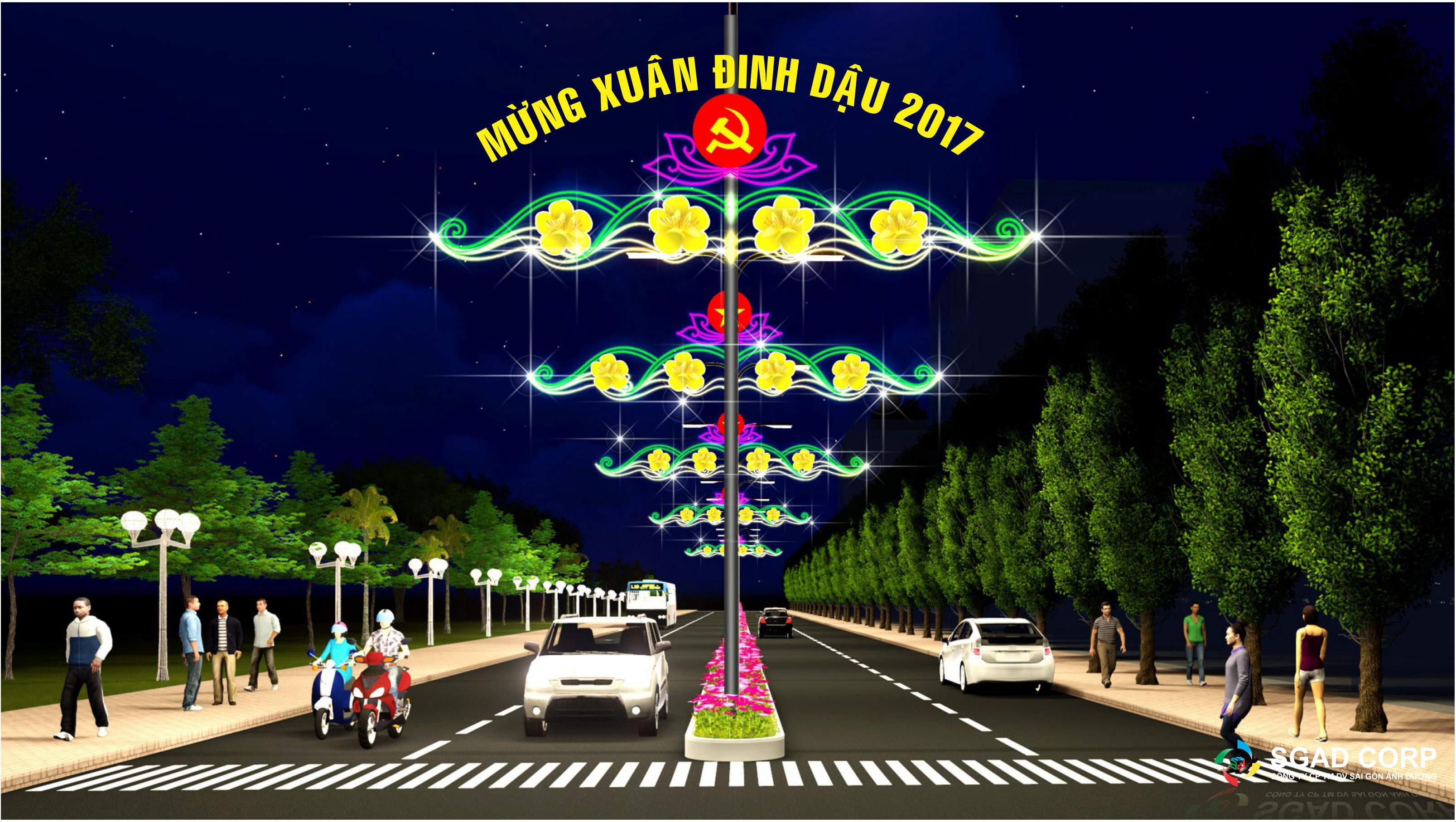 - Đường ĐT 826 với tổng chiều đai thực hiện 1,2km với 10 bộ con son và 2 dải đầu đường với bộ chữ "CHÚC MỪNG NĂM MỚI 2017" ở mỗi đầu đường