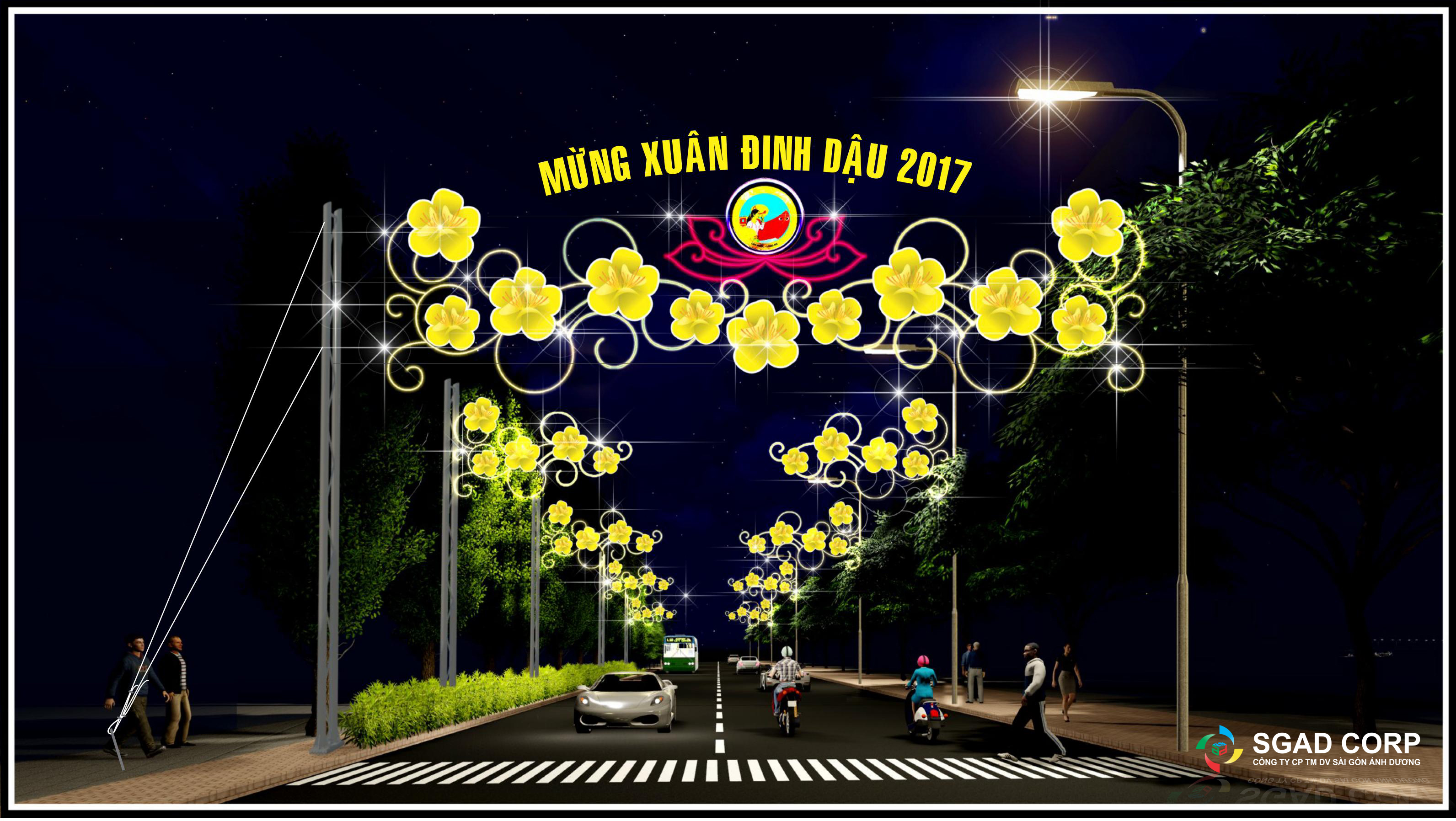 - Đường Quốc lộ 50 với tổng chiều dài thực hiện 1,2km với 16 bộ con son 2 bên đường và 2 dải đầu đường với bộ chữ "MỪNG XUÂN ĐINH DẬU 2017" ở mỗi đầu đường