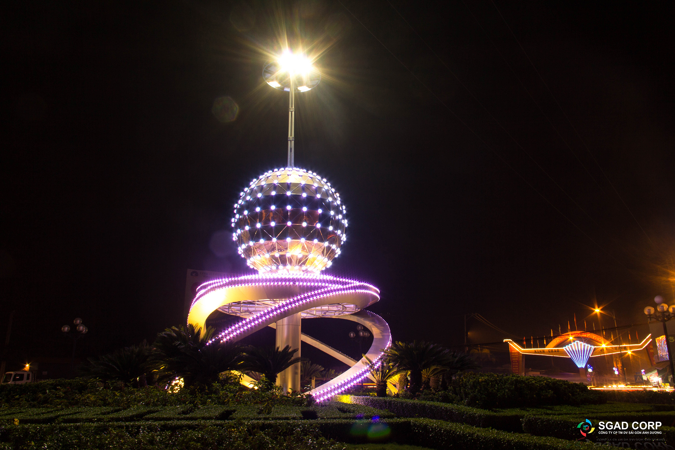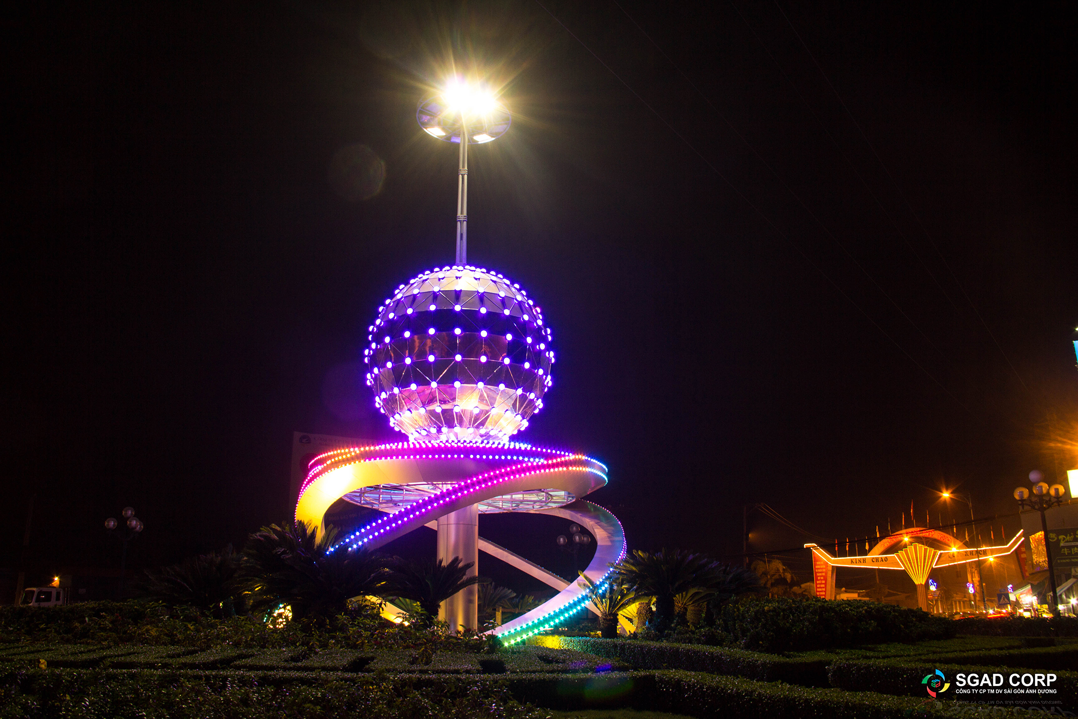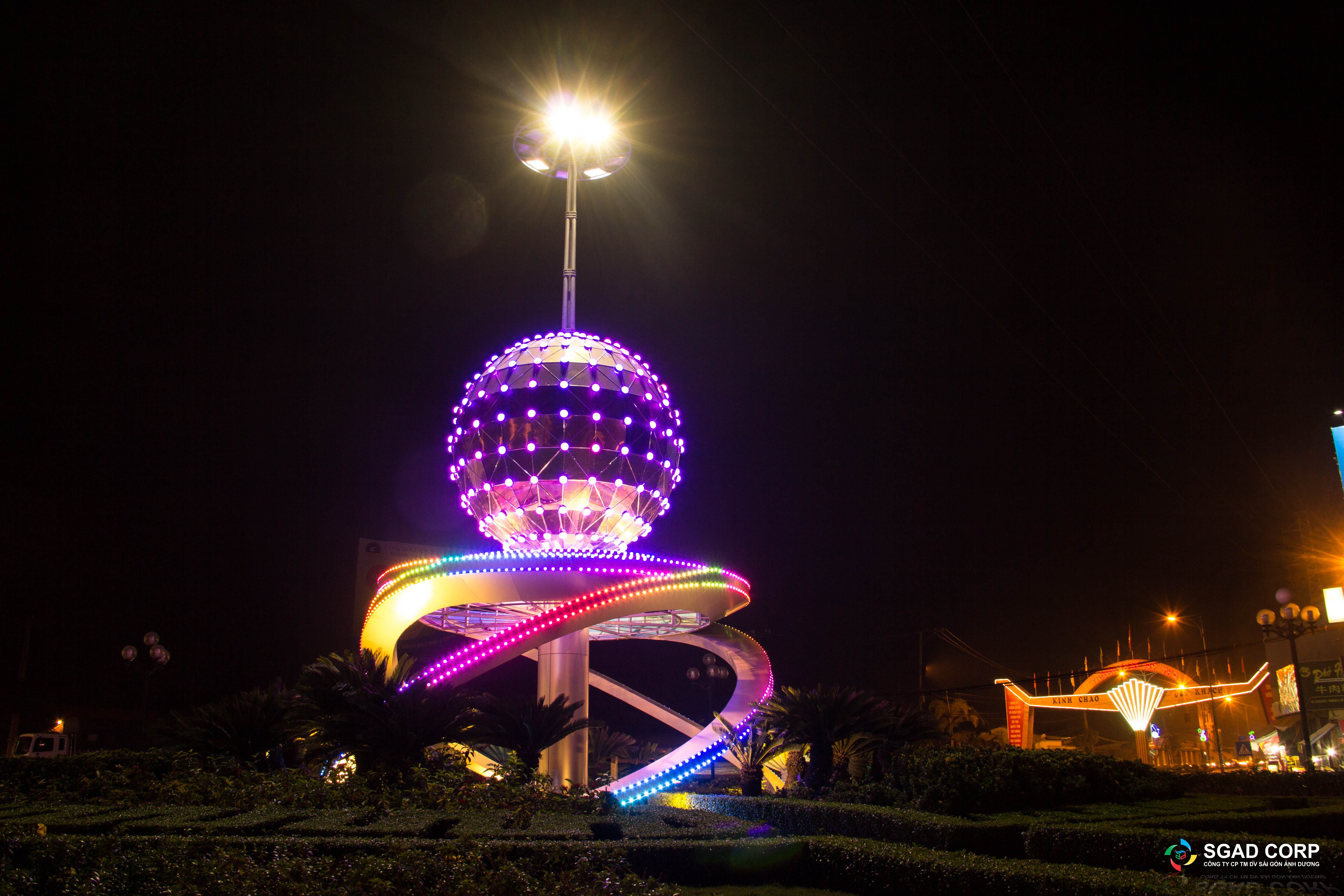 Công trình chiếu sáng nghệ thuật Vòng xoay Ngã ba Trung Lương như một điểm nhấn quan trọng của thành phố Mỹ Tho, công trình như là lời chào, lời giới thiệu về một thành phố mộng mơ với vẻ đẹp huyền dịu, kết hợp giữa chất tự nhiên và hiện đại. Với ý tưởng thiết kế tạo hình quả cầu kết hợp với khối chân trụ đỡ quả cầu tạo hình cách điệu.